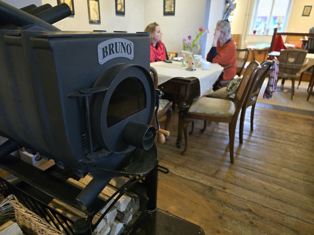 Ofen Bruno sorgte mit wohligen Temperaturen für eine gemütliche Atmosphäre, während drinnen fleißig gequatscht, genäht und gespielt wurde. Für die kleinen Gäste stand ein buntes Bastel- und Malprogramm bereit.